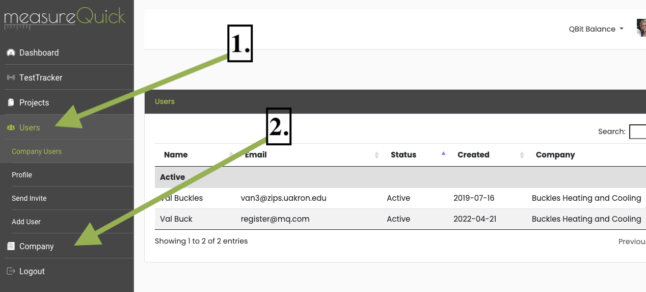 - Activate measureQuick subscription - Under the Company tab, click Billing.