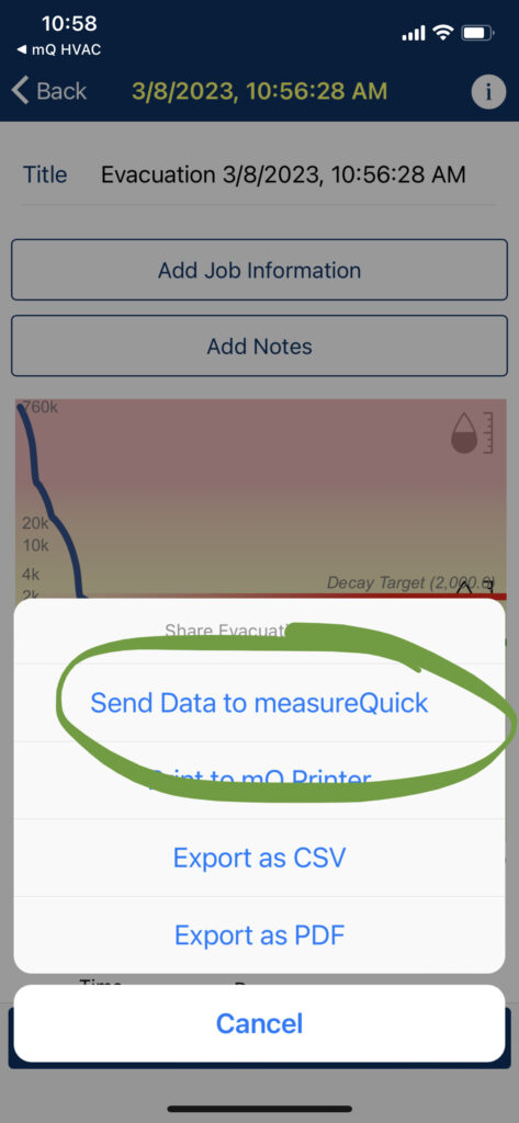 The BluVac Integration with measureQuick is accomplished through an app-to-app communication scheme. In the mQ app, if you go to the Toolbox > Data Sharing Tools > BluVac System Evacuation App and choose Activate. This will enable the BluVac integration. This will then make a BluVac card in the mQ project which you can use to open the BluVac app. Once this is done, you’ll see an option to send the report to mQ in the BluVac app after the evacuation is complete. Here is a step-by step tutorial: