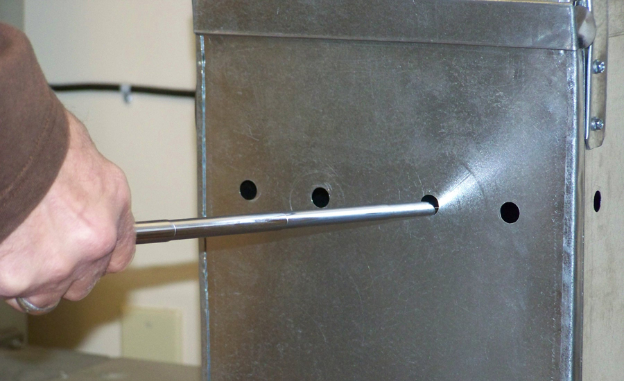 For return-side ports on furnaces where the return duct connects directly to the cabinet, drill into the duct rather than the furnace cabinet if possible. Drilling into the cabinet risks hitting internal components. If you must drill into the cabinet, verify the location is clear of wiring, gas lines, and the heat exchanger before drilling.