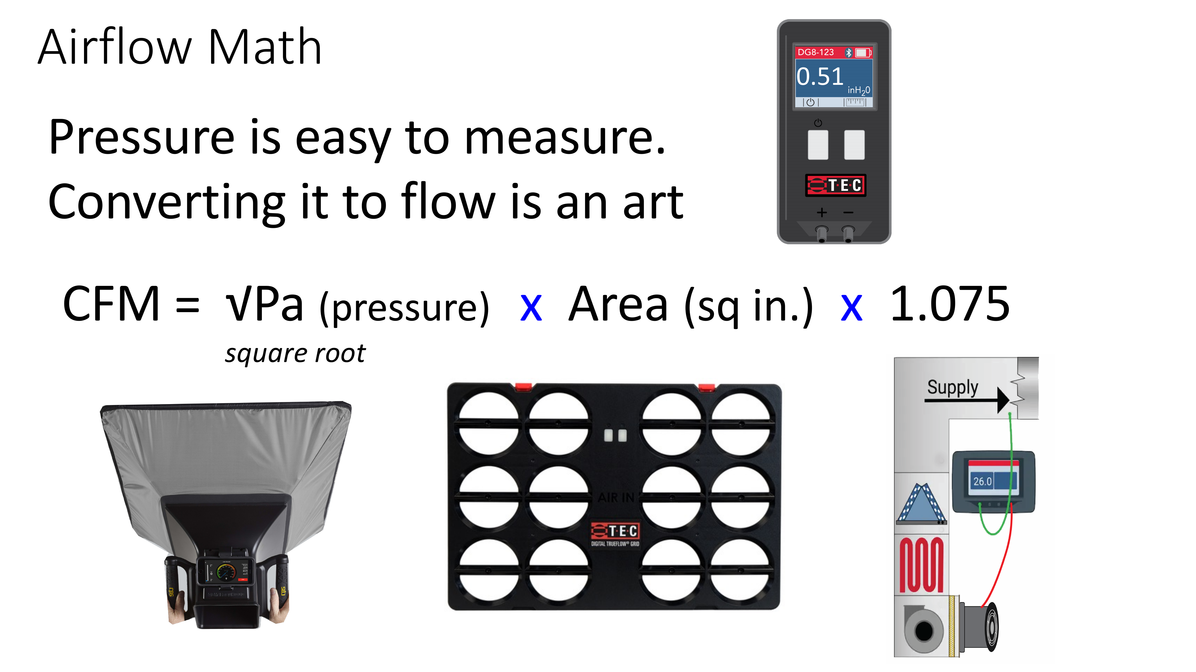 The measurement principle is identical to TrueFlow and blower doors: force air through a known restriction, measure the pressure difference, and convert that pressure to airflow using the calibration data. The difference is in the geometry and calibration precision of the restriction itself.