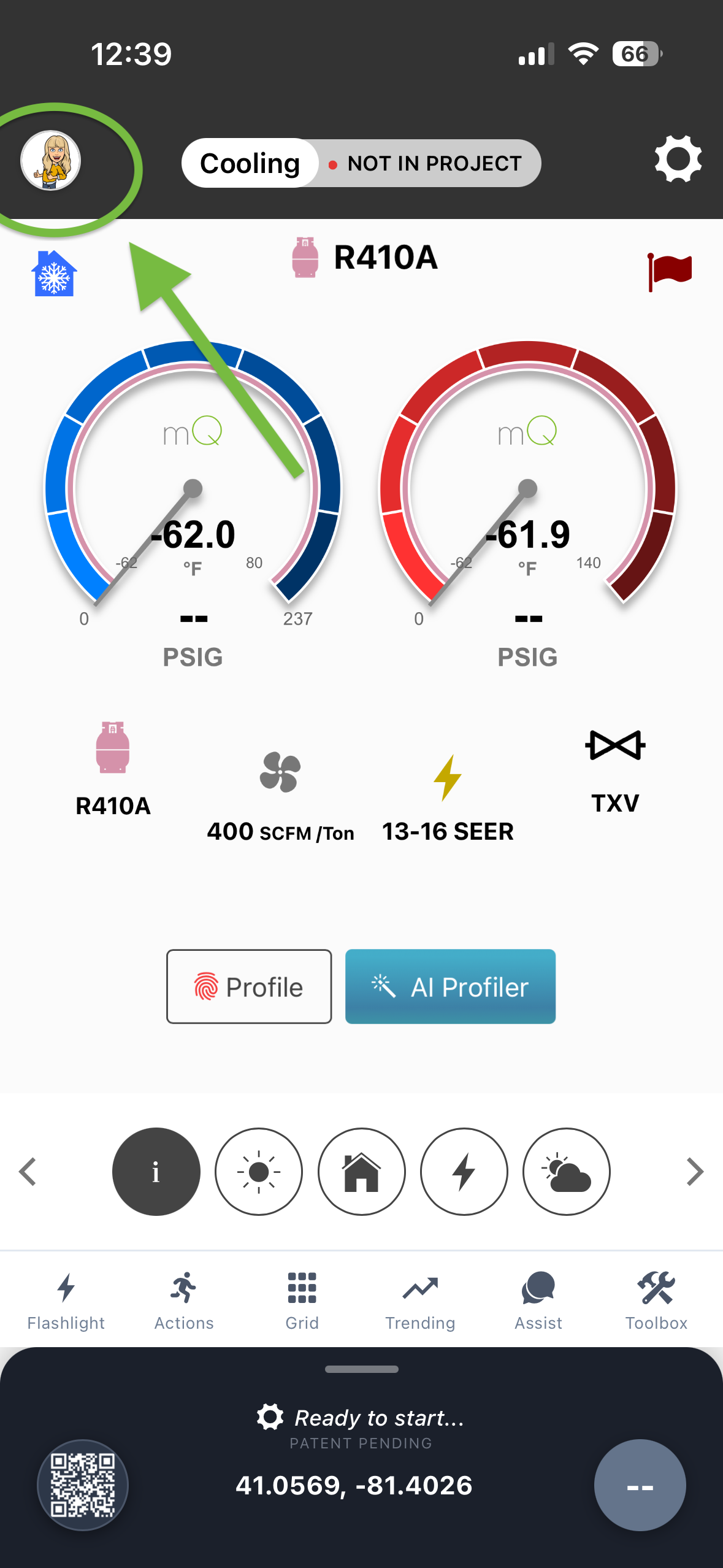From the home screen of measureQuick, click on the person icon in the upper left hand corner.